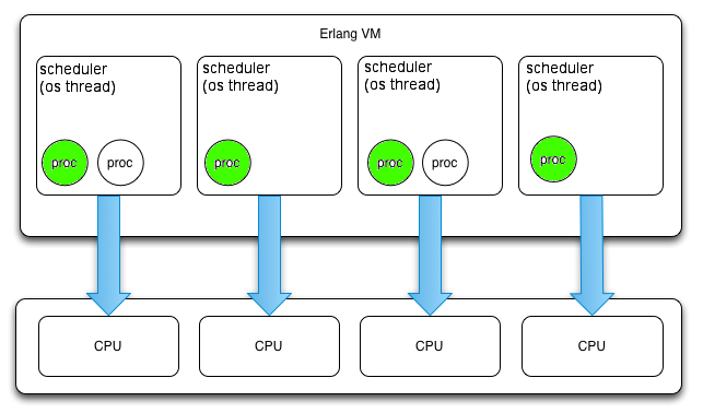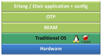 Runs in the BEAM (Bjarne's Erlang Abstract Machine) Virtual Machine