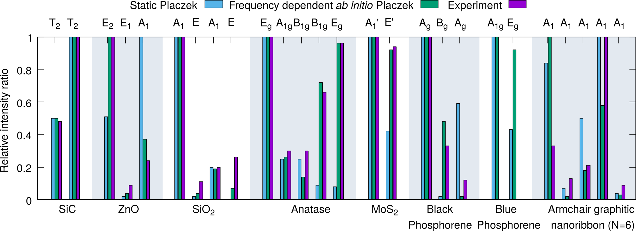 - Nem-triviális Raman-spektrum: két aktív és két inaktív csúcs