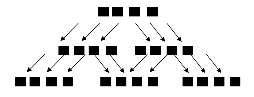 Нет обращений к диску. Последовательная запись при сбросе уровня 0 на диск.