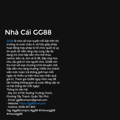 GG88 là nhà cái trực tuyến nổi bật trên thị trường cá cược châu Á, sở hữu giấy phép hoạt động hợp pháp từ tổ chức quản lý uy tín quốc tế. Nền tảng này cung cấp đa dạng trò chơi hấp dẫn như thể thao, casino, bắn cá,