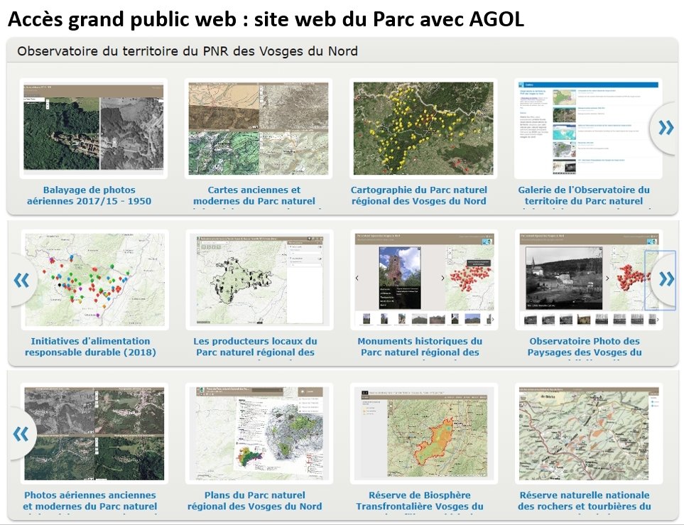 - RB des VN : plateforme QGIS + appli web OpenSource type Geotrek pour la randonnée dans les Vosges du Nord (cf plus bas) + quelques applis ArcGIS Online pour le côté "studio", pratique et vite fait