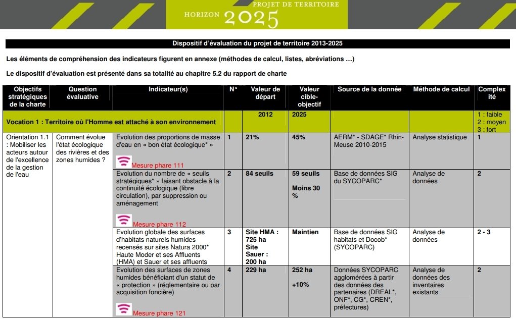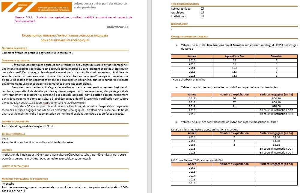 - suivi de l'évolution du territoire : 55 indicateurs de la charte