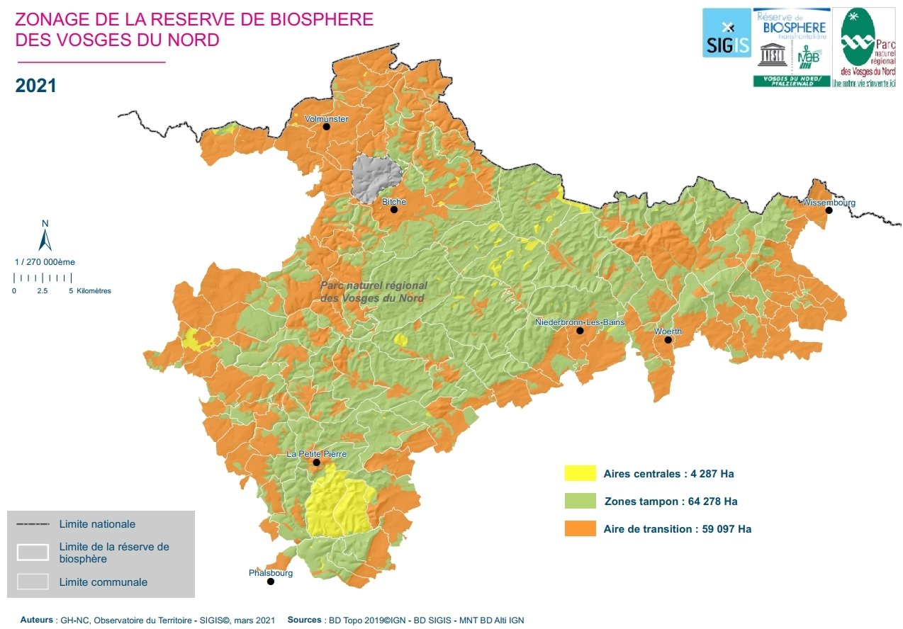 - à l'échelle de la RBT (https://www.parc-vosges-nord.fr/le-parc/les-missions-du-parc/mission/observatoire-du-territoire-de-la-reserve-de-biosphere-transfrontaliere-vosges-du-nord-pfalzerwald)