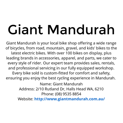 http://www.giantmandurah.com.au/ Giant Mandurah offers bike sales, rentals, e-bikes, road, mountain & gravel bikes, plus expert repairs, servicing & gear for every rider in Mandurah.