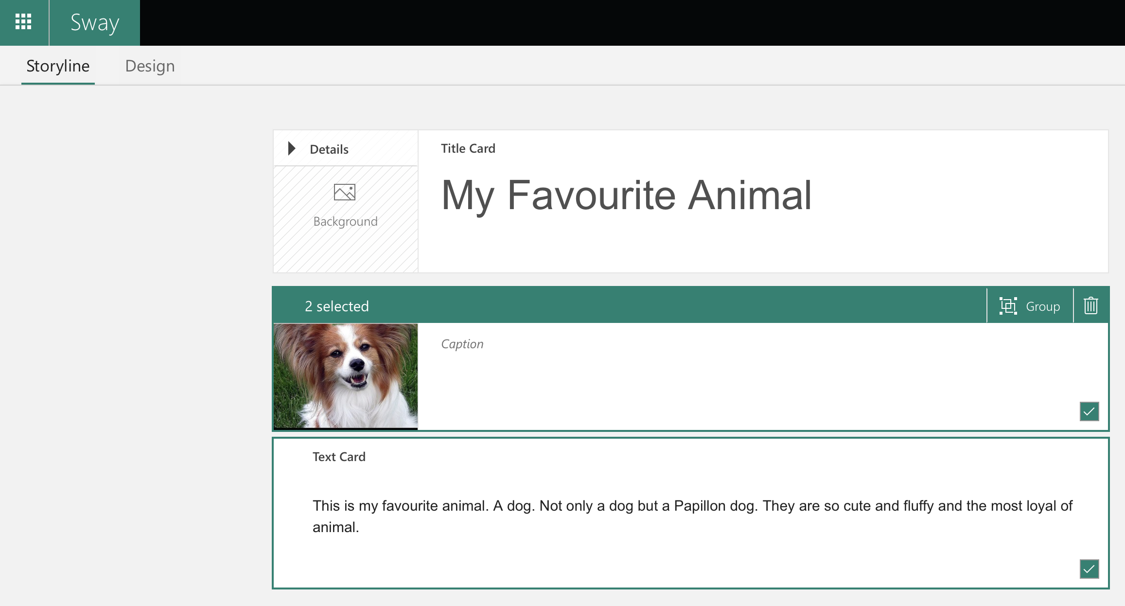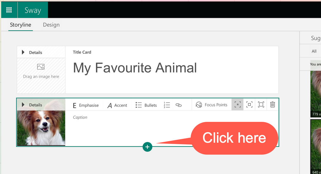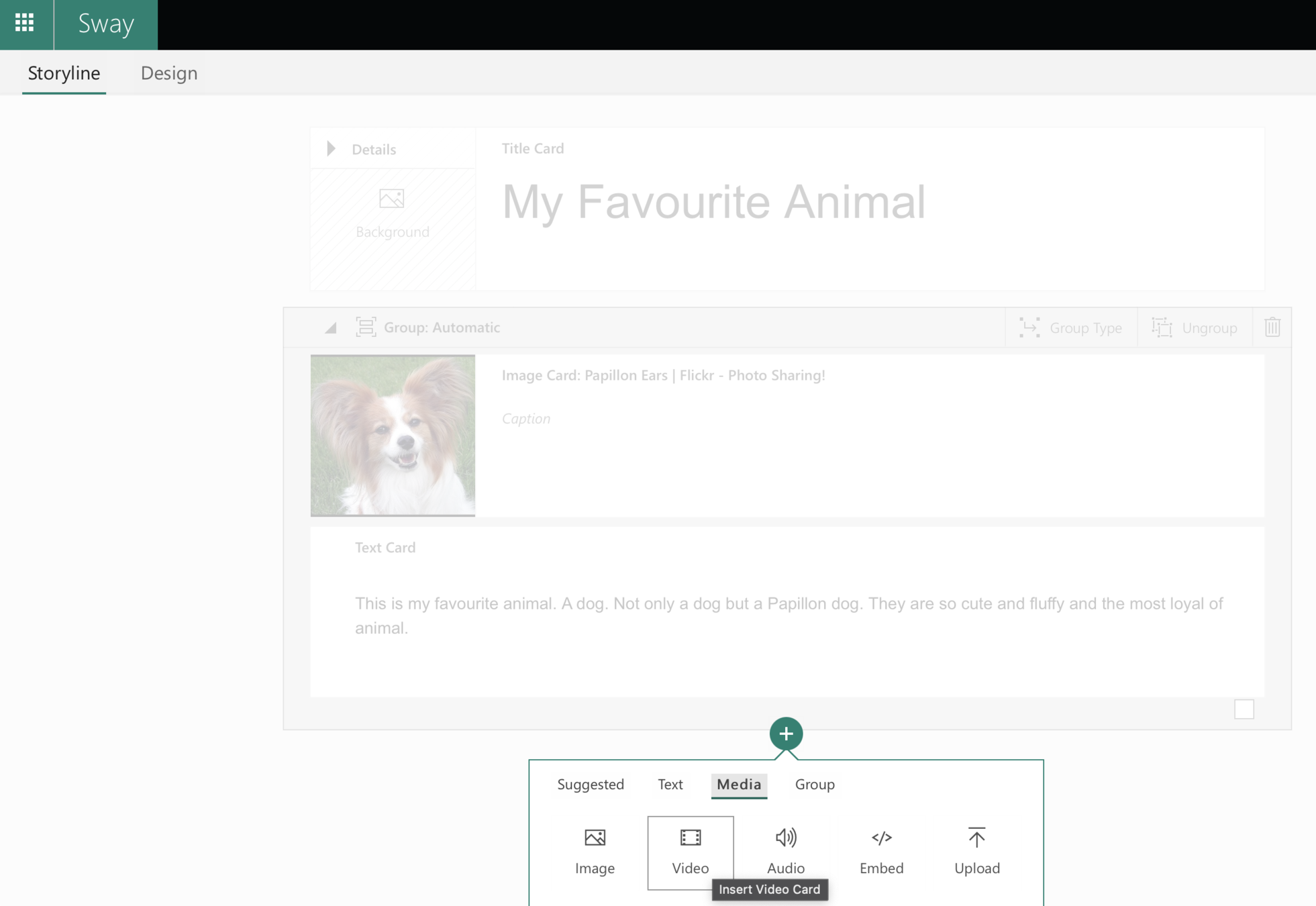 From here you should add a title to your Sway. For today, I would like you to make a presentation about your favourite animal.