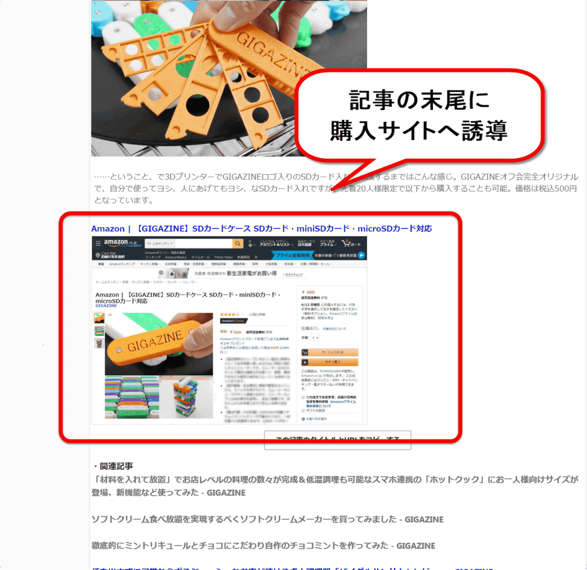 ◆タイトルや切り口は、商材の強みを最大限に生かしつつ、GIGAZINEの経験やデータからターゲット層を分析し、ニーズを読み取ることで、読者との親和性が高い=716万のユニークユーザーの「欲しい」を顕在化させるものとしています。