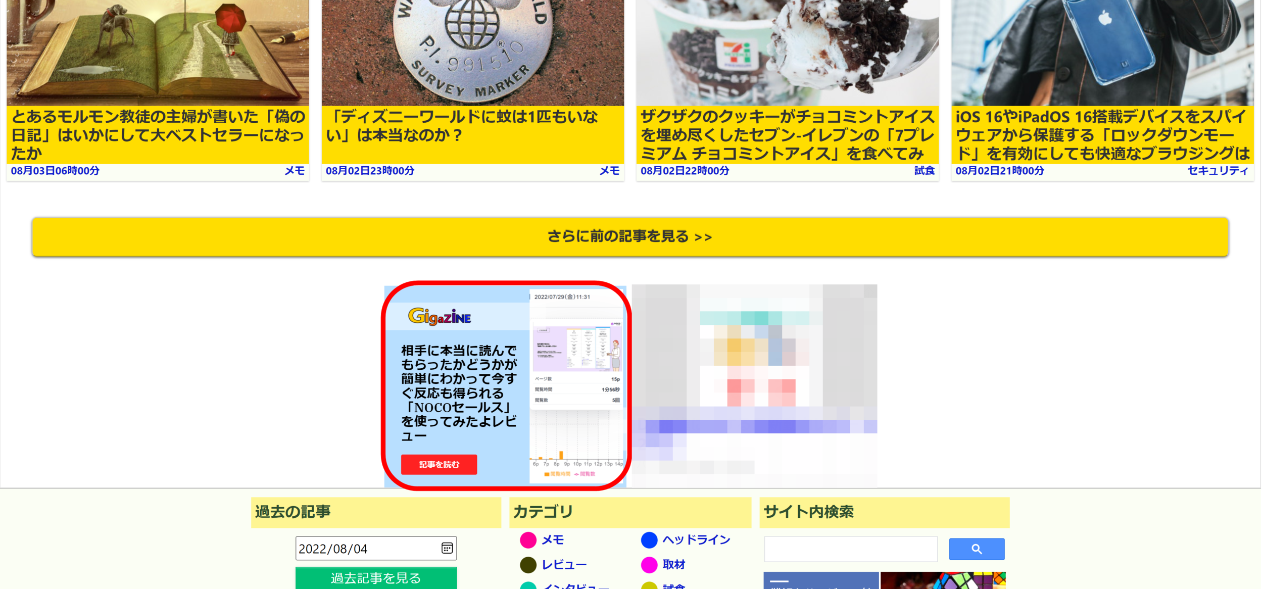 ◆GIGAZINEの経験とデータを生かした「引きの強いワード」を押し出すことで、検索結果からの流入も強化しています。