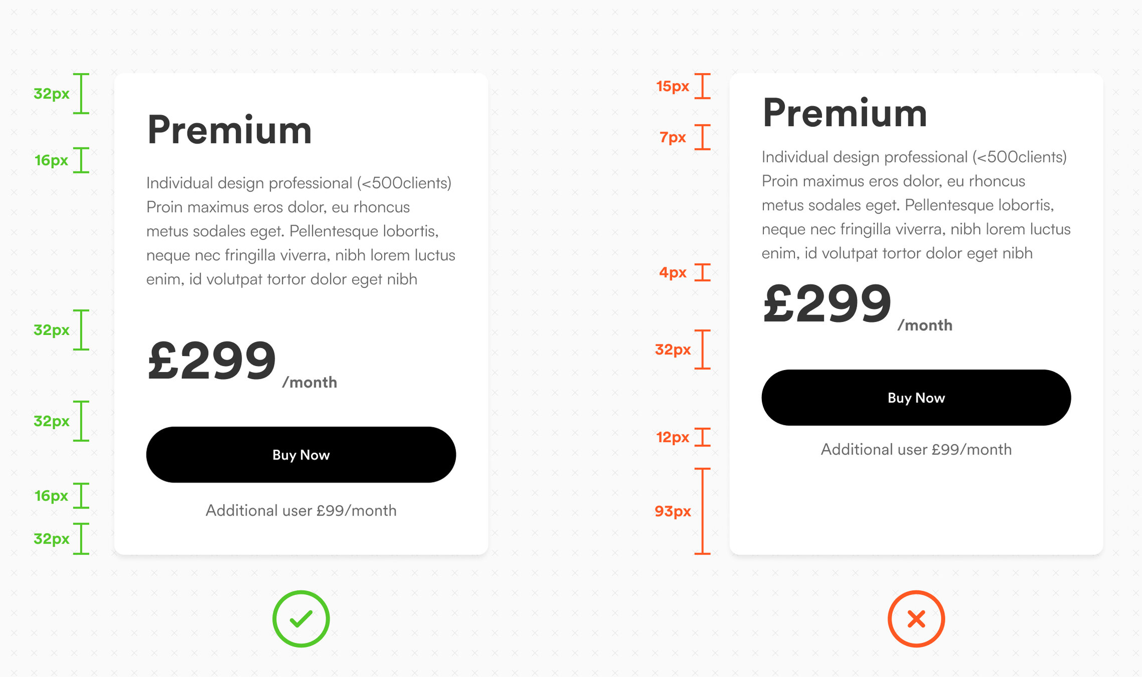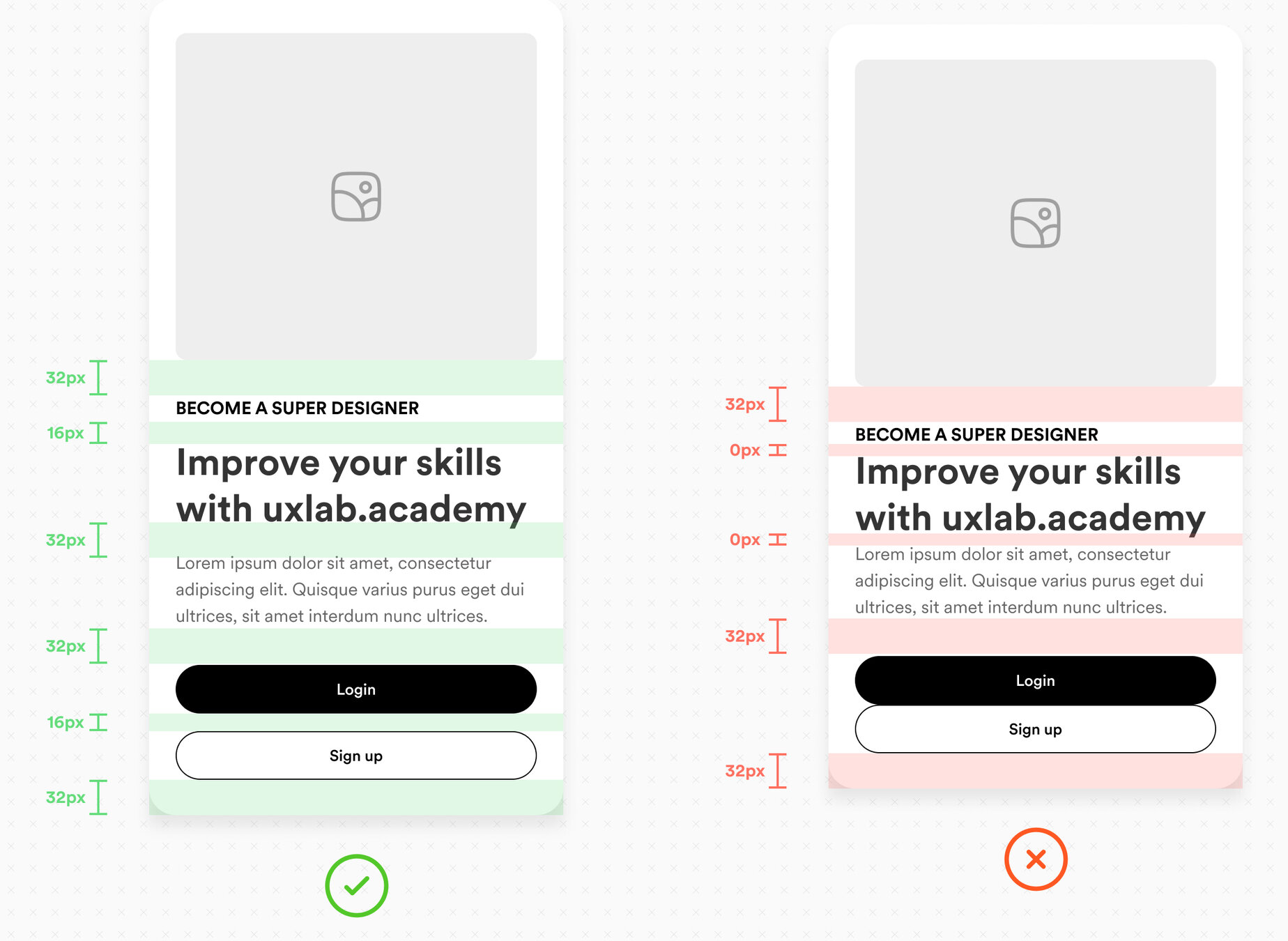 Podemos ajustar la distancia entre elementos para guiar hacia el contenido más importante (o, por el contrario, distraer del menos importante).