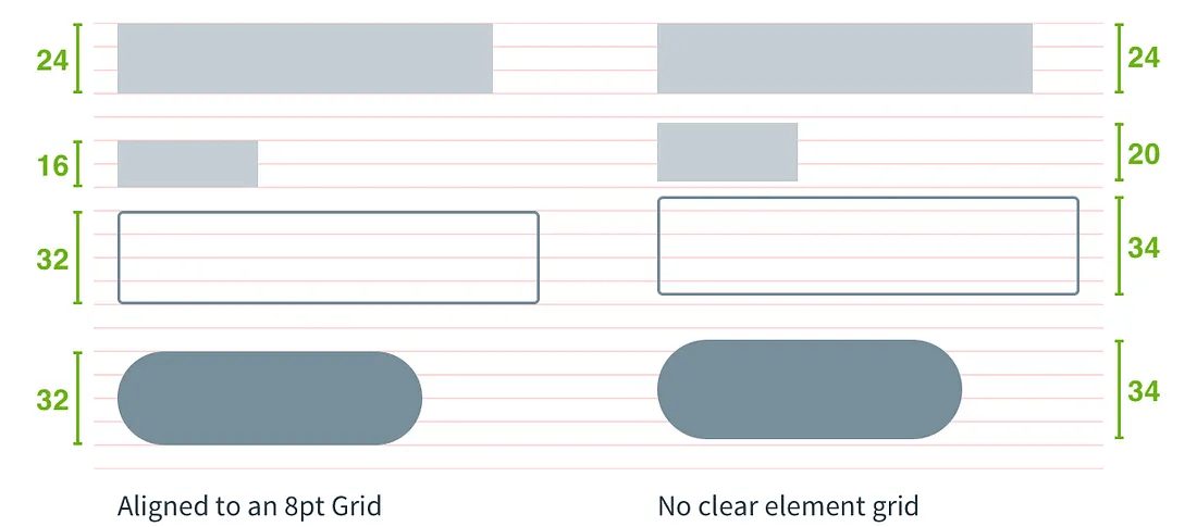 Una solución simple es usar una retícula con una unidad base de 8px