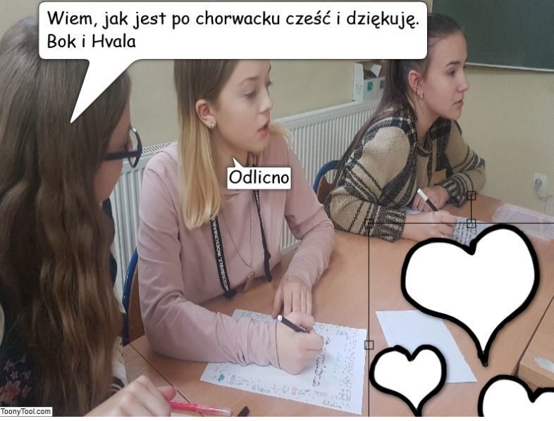 "Po raz pierwszy pracowalismy nad projektem w języku polskim i chorwackim. Nauczylismy się nie tylko dużo nowych słów, ale poznalismy tradycje i zwyczaje świąteczne. Bardzo ciekawy projekt. Koledzy nie mieli czasu, żeby przeszkadzać na godzinie wychowawczej. Najbardziej podobala mi się wymiana listów"