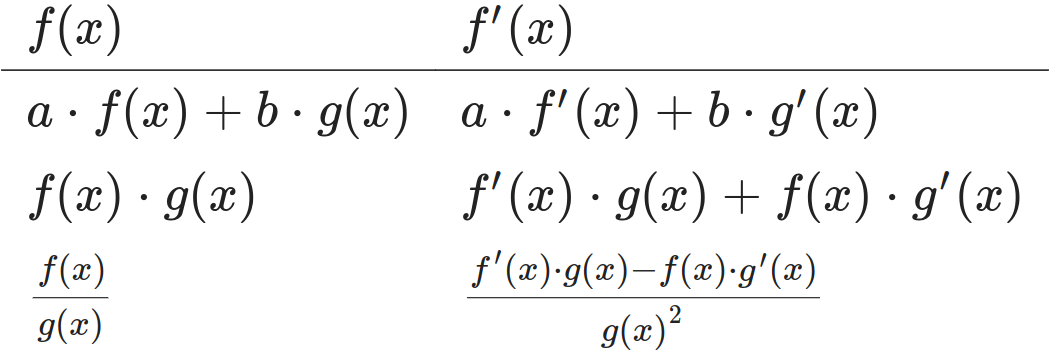 derivate: somma, prodotto e divisione