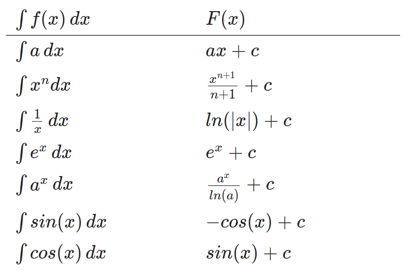 integrali indefiniti fondamentali