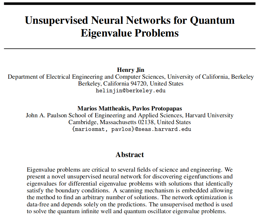 Materials and Platforms for AI - Physics Informed Neural Networks for Quantum Eigenproblems