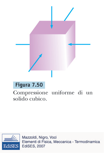 \[ \frac{\Delta P}{P} = -\frac{\Delta V}{V}; \; \Delta P = - B \frac{\Delta V}{V} \]