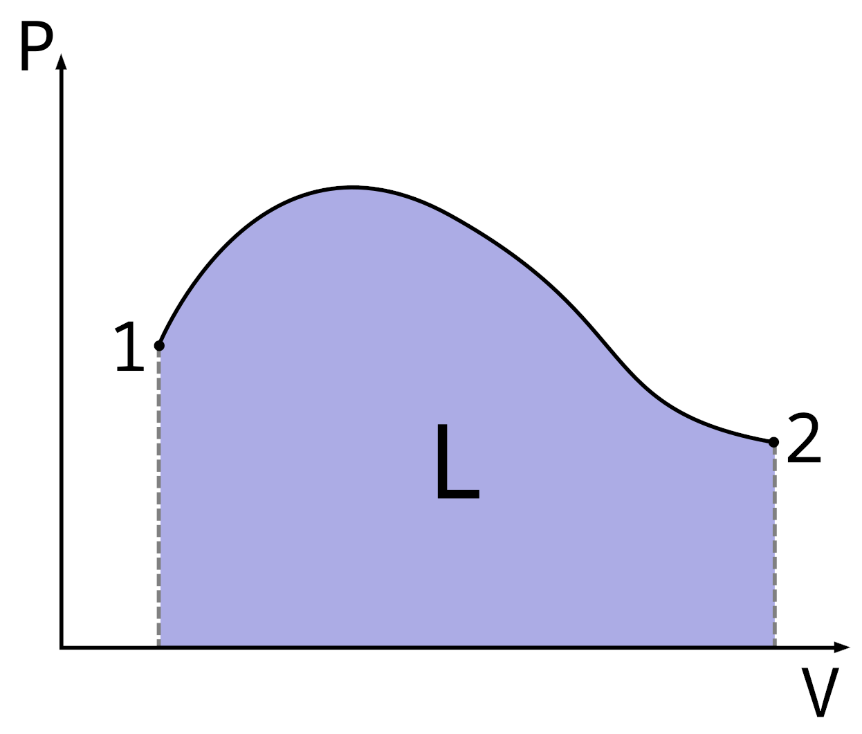 \[ L = \int_{1}^{2}dL = \int_{V_{1}}^{V_{2}}p dV \]