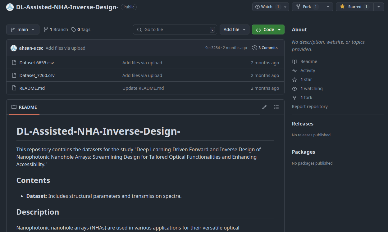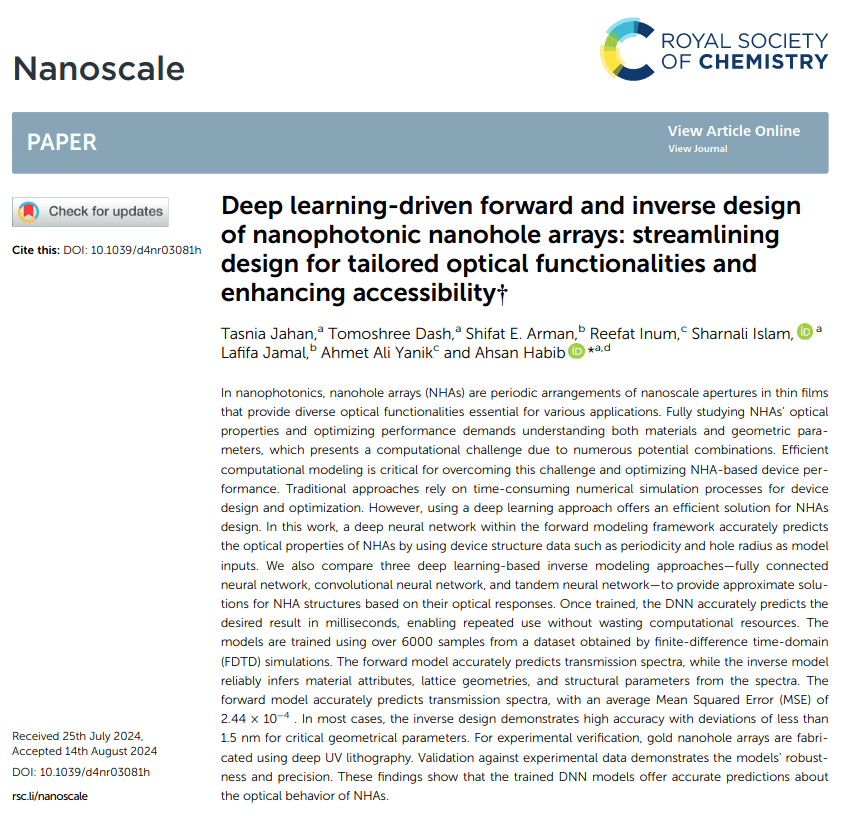 Jahan, T. et al. Deep learning-driven forward and inverse design of nanophotonic nanohole arrays: streamlining design for tailored optical functionalities and enhancing accessibility. Nanoscale (2024) doi:10.1039/D4NR03081H.