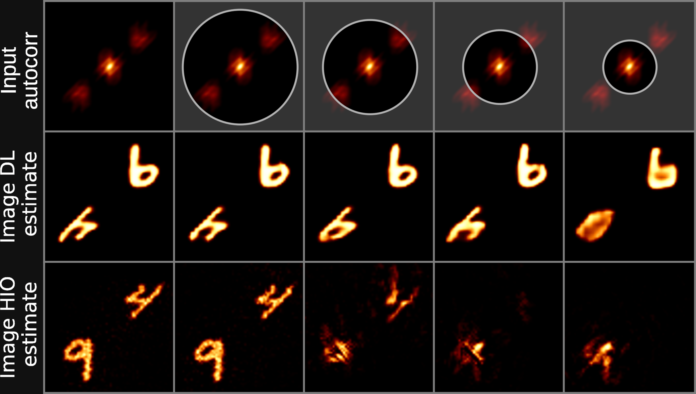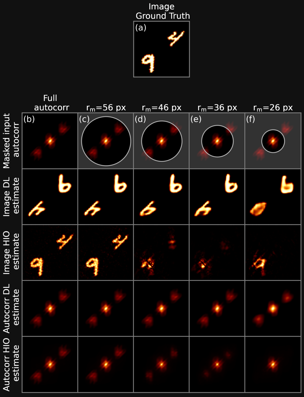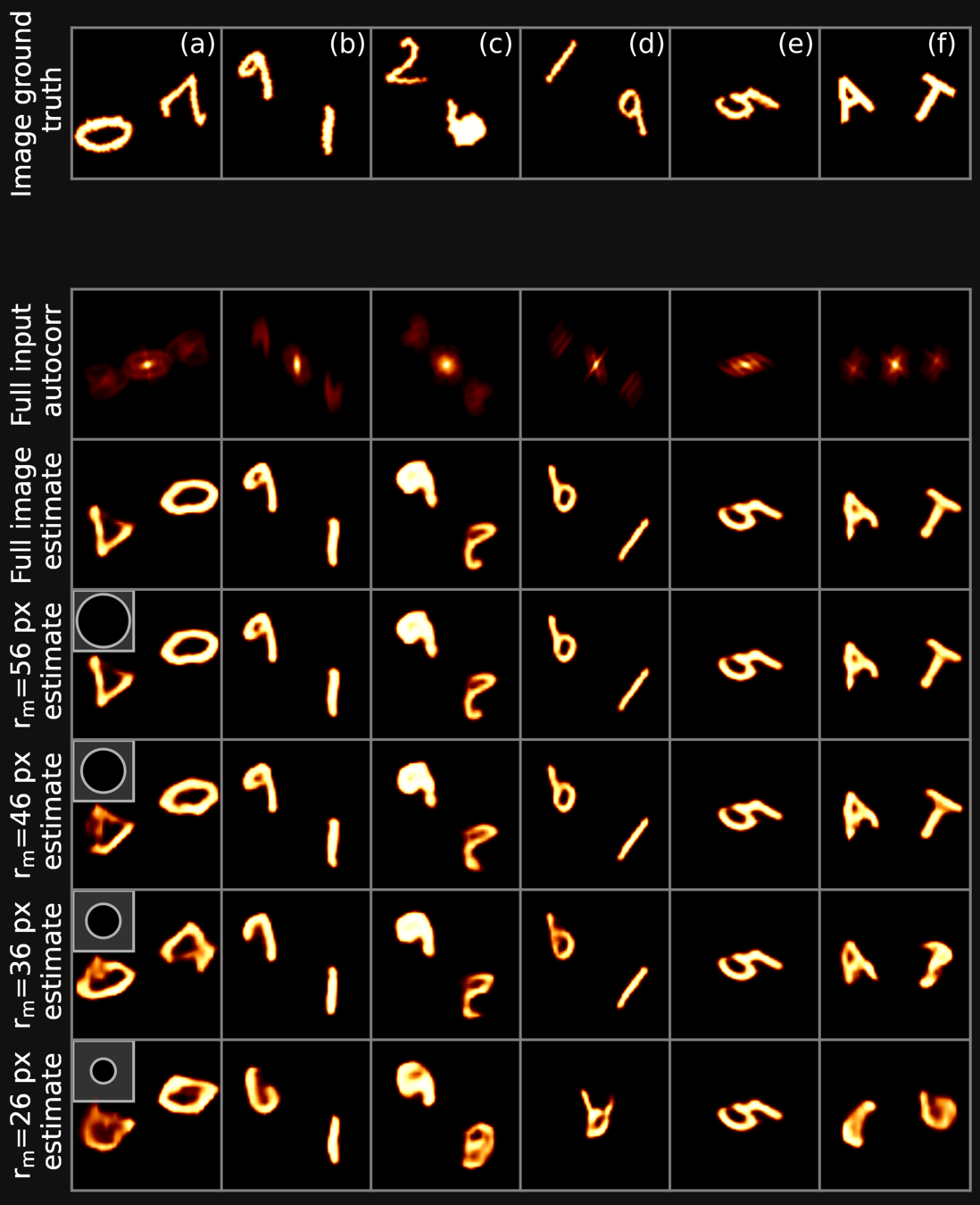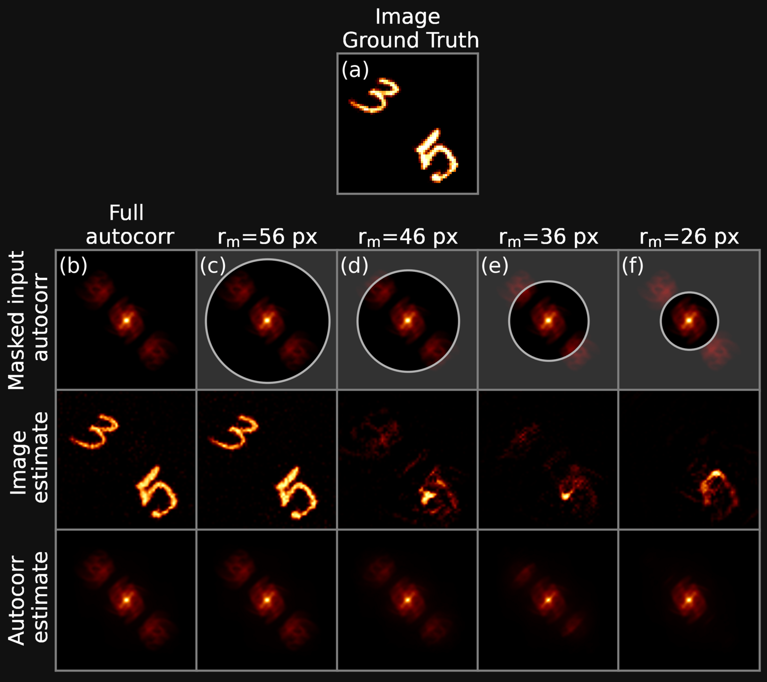 We apply a circular erosion mask to the Fourier autocorrelation, in order to assess the performance of traditional methods in presence of partial information