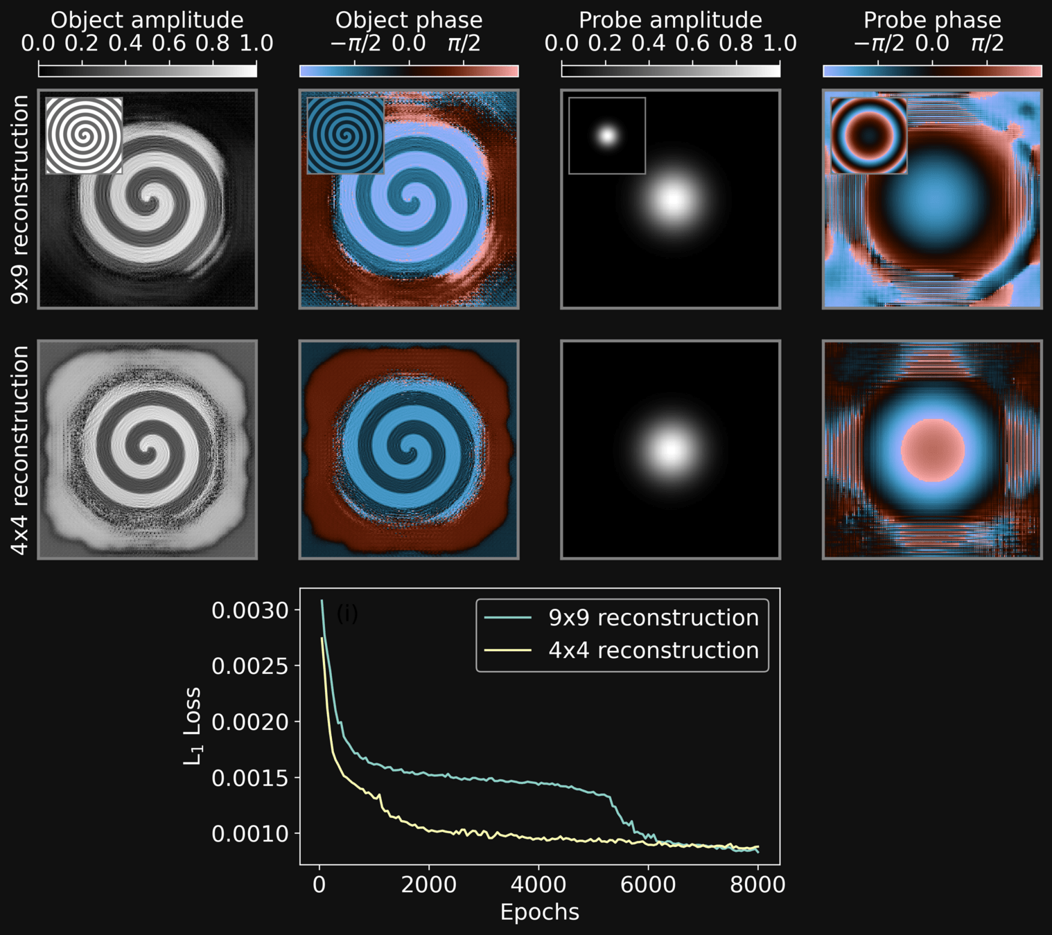 We tested the reconstruction performance against different probe grids