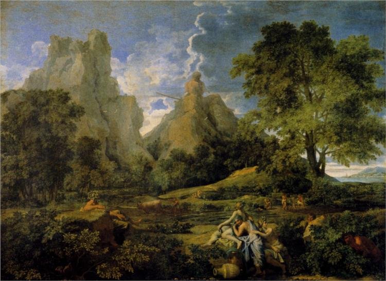 ampio e armonioso spazio nella celebre serie di pitture a olio su tela Funerali di Focione (1648, Museo Nazionale del Galles), Polifemo (1649, Ermitage), Diogene (ca 1647, Louvre), Orfeo