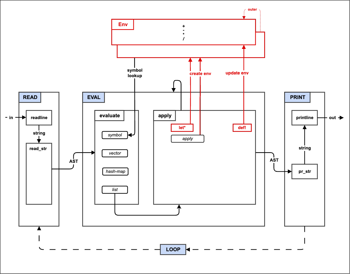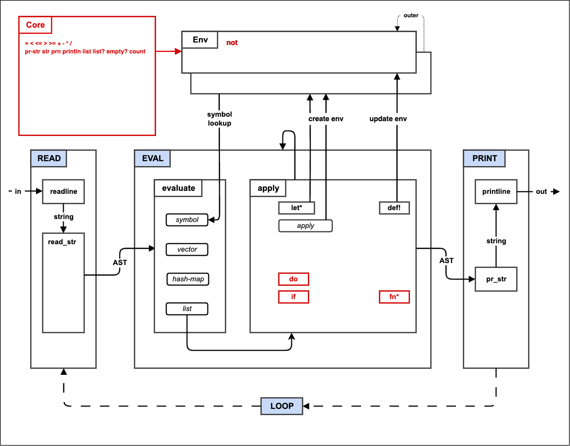 An overview of the make-a-lisp project, which provides a multi-step procedure for creating a LISP interpreter.