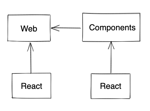 The second one is a web project that also has React as a dependency but at the same time, the components project is a dependency as well.