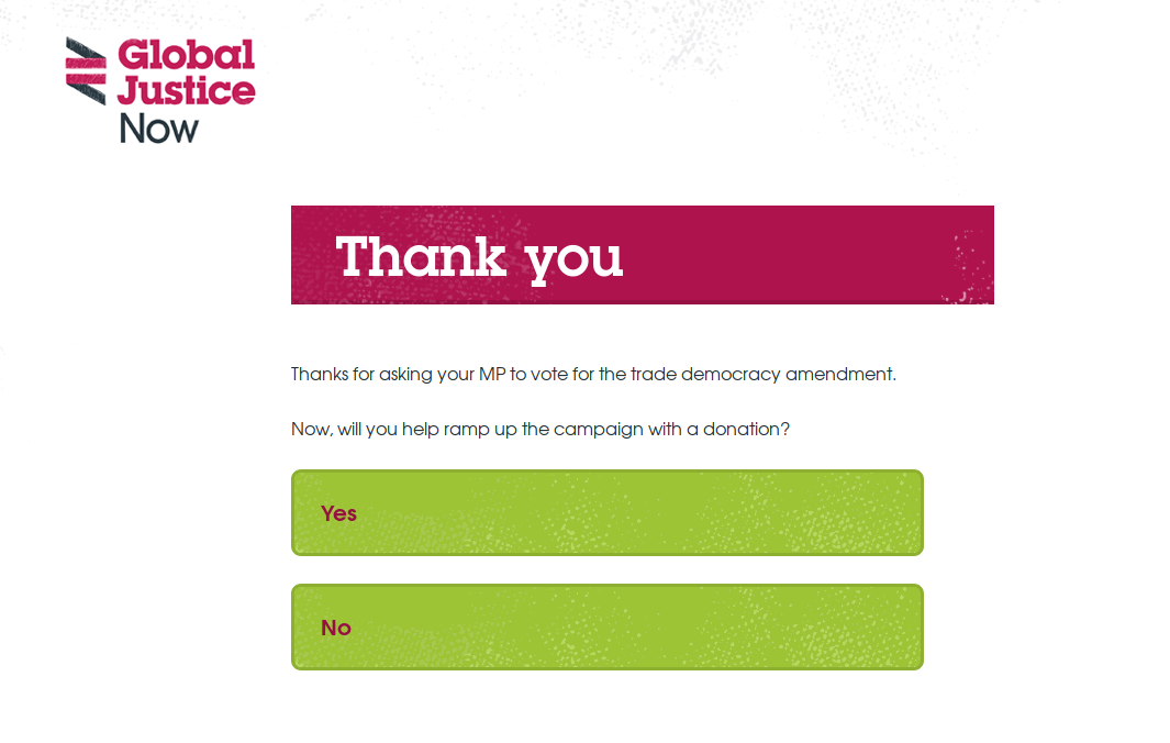 If they are an existing supporter, ask them to donate after they have signed the petition