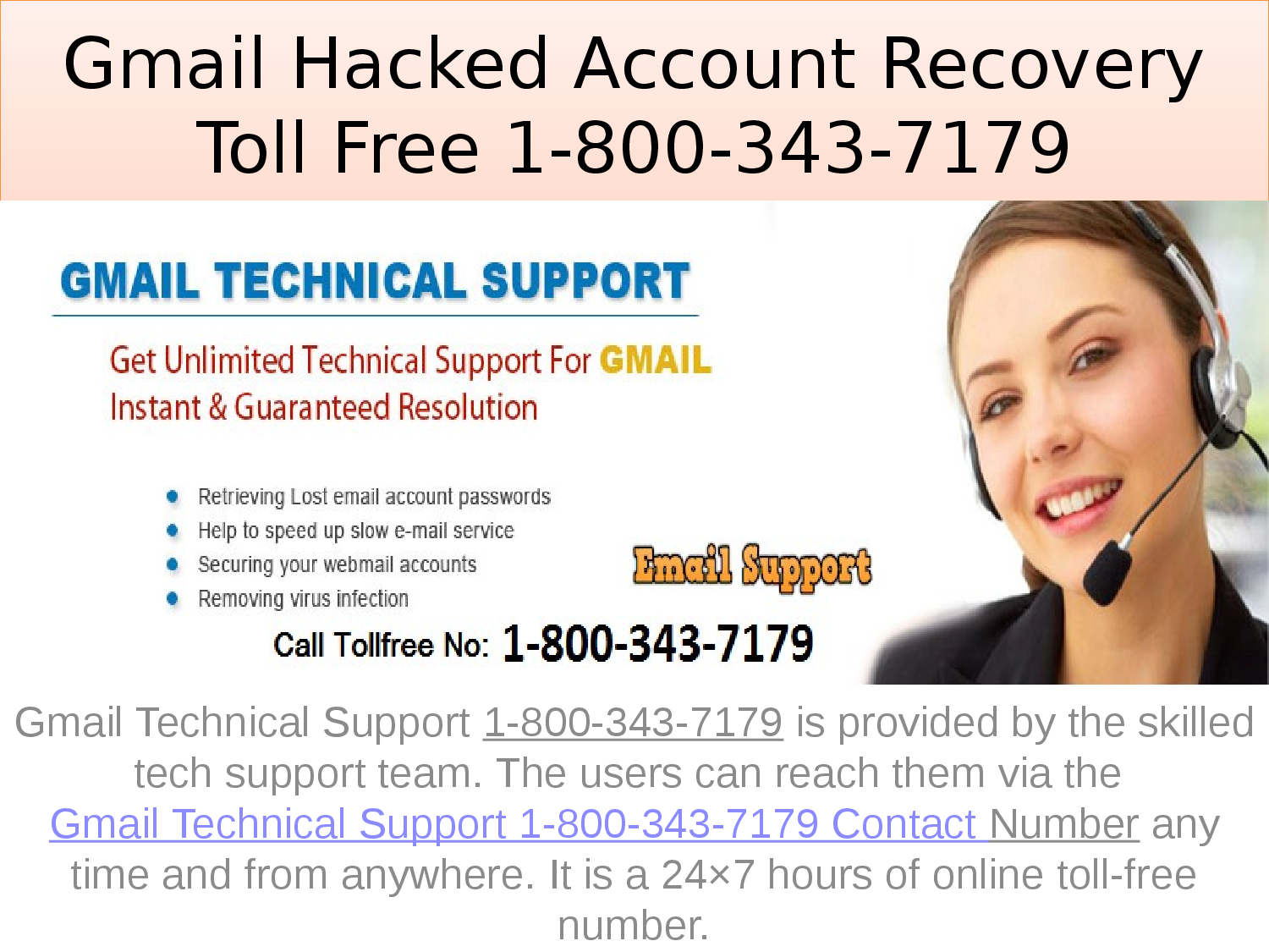 Gmail Account accidentally got deleted or you lost the password by mistake, you may not worry a lot about the misuse of your Gmail account. Gmail Tech Support @1-800-343-7179 team not only solve the mailing and apps related issues, but they also keep your Gmail Account safe and protected from severe online threats like password hacking, unauthorized access, software viruses, etc. You can call on #1-800-343-7179 the online 24×7 hours of Toll-Free @1-800-343-7179 Helpline Number to interact with the Tech Support Executives in the best manner.