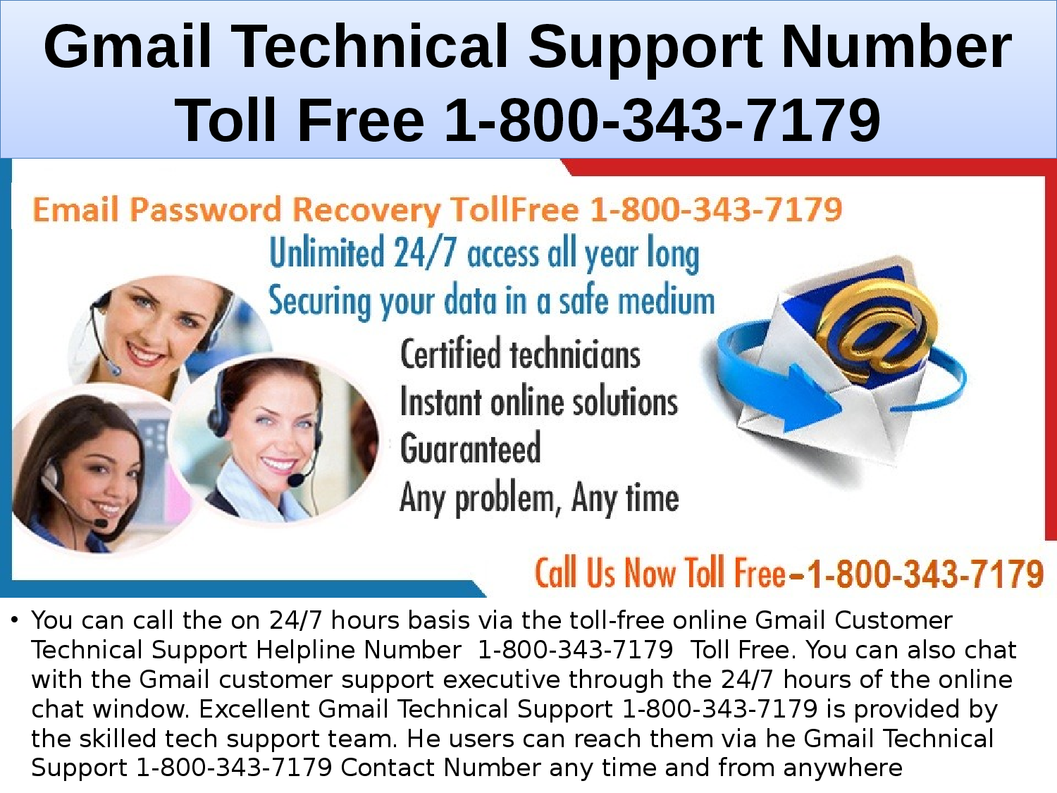 Excellent Gmail Technical Support 1-800-343-7179 is provided by the skilled tech support team. The users can reach them via the Gmail Technical Support 1-800-343-717Contact Number any time and from anywhere.
