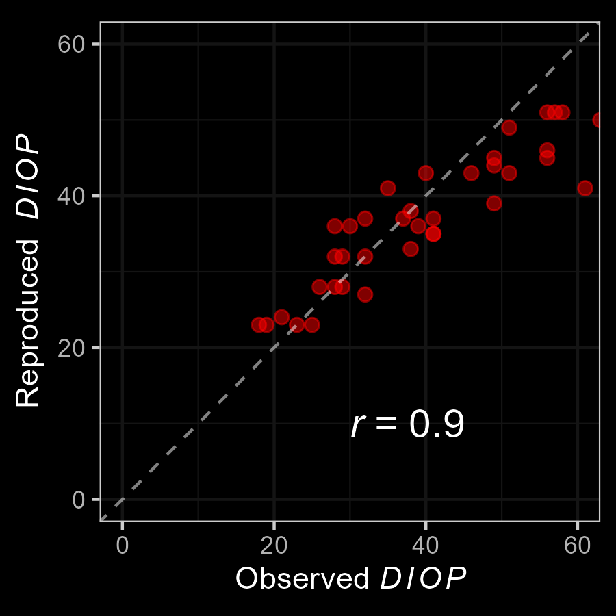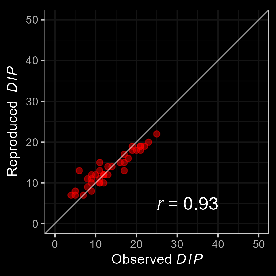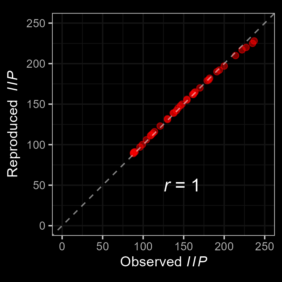- Correlational and deviation measures, as well as distributional properties of the residuals are well suited to asses the parameter recovery