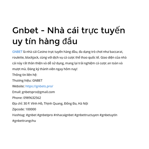 GNBET là nhà cái Casino trực tuyến hàng đầu, đa dạng trò chơi như baccarat, roulette, blackjack, cùng với dịch vụ cá cược thể thao quốc tế. Giao diện của nhà cái này rất thân thiện và dễ sử dụng, mang lại trải nghiệm cá cược an toàn và mượt mà.