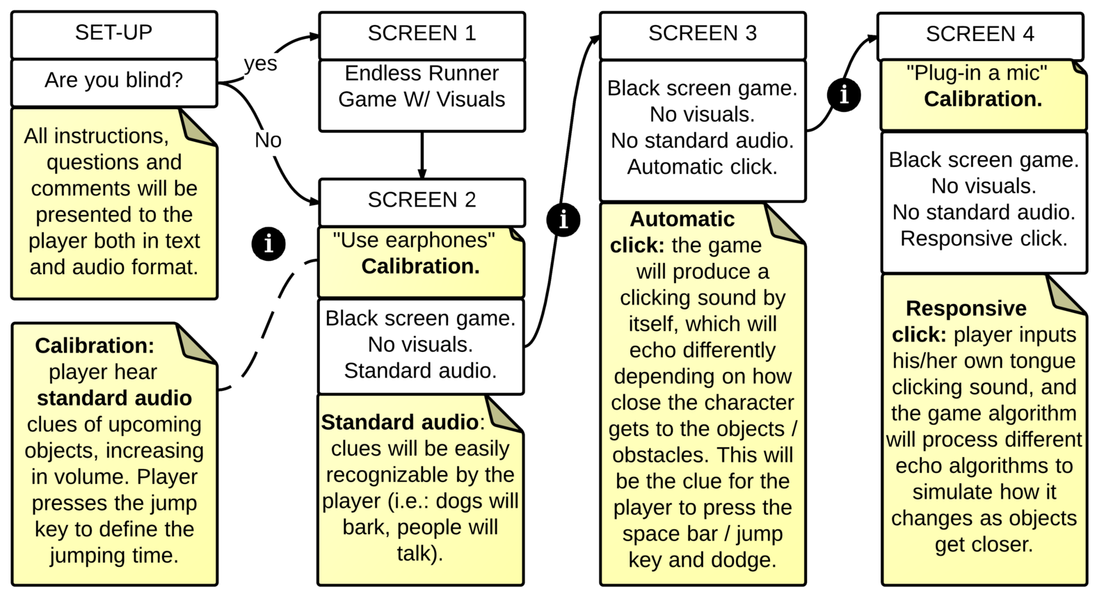 However, not many people, either blind or sighted, know about Flash Sonar. As a result, this wonderful technique is neither as widely used nor as socially accepted as it could be. In order to improve that, this game simulation will teach players the basics of Flash Sonar and engage them in supporting it.