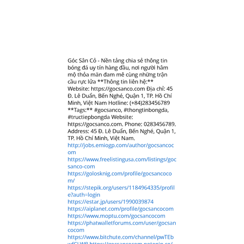 Website: https://gocsanco.com. Góc Sân Cỏ - Nền tảng chia sẻ thông tin bóng đá uy tín hàng đầu, nơi người hâm mộ thỏa mãn đam mê cùng những trận cầu rực lửa **Thông tin liên hệ:** Website: https://gocsanco.com Địa chỉ: 45 Đ. Lê Duẩn, Bến Nghé, Quậ