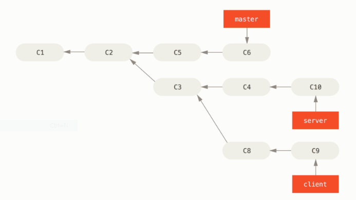 $ git merge client이제 다시 마스터로 돌아가서 fast-foward merge