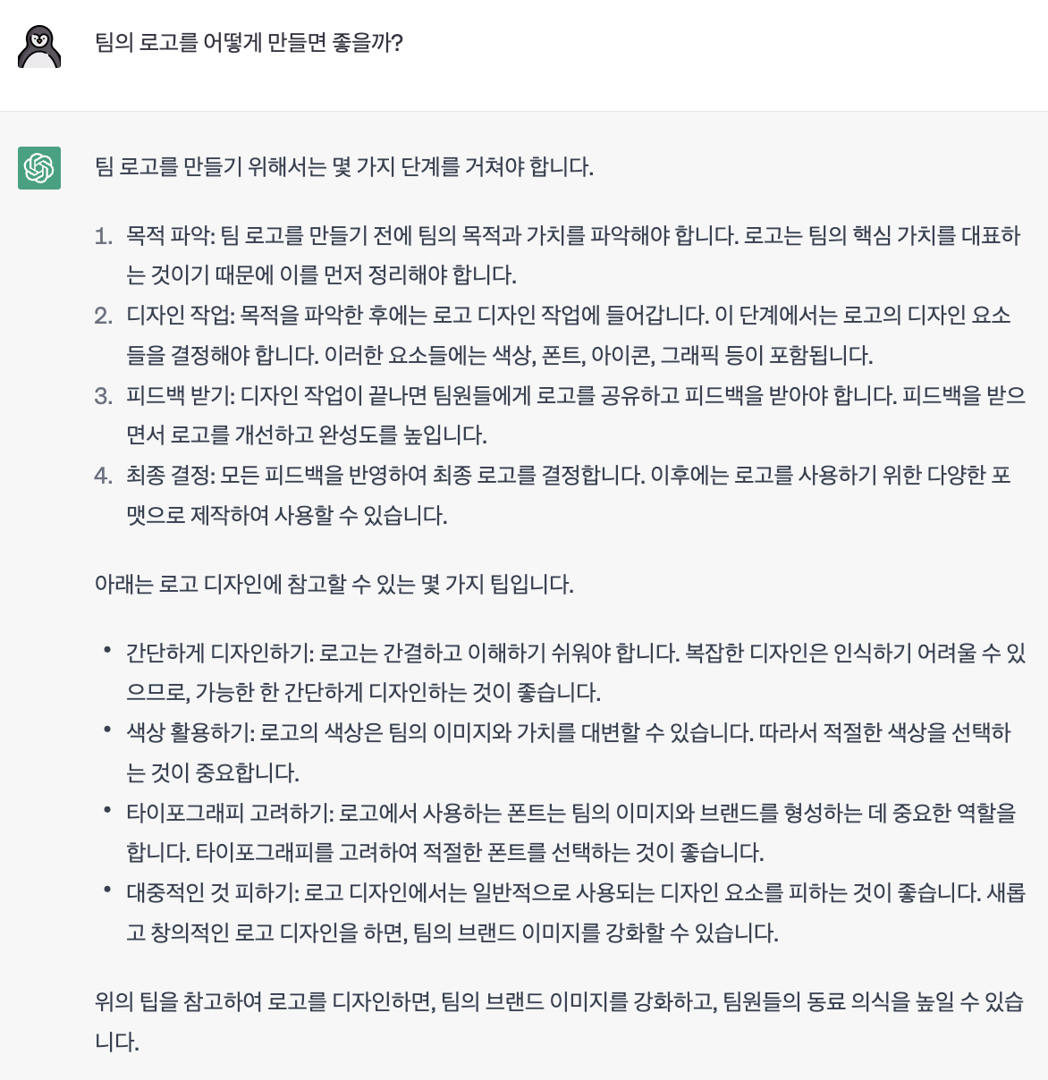 각 그룹은 팀의 정체성을 나타낼 수 있도록