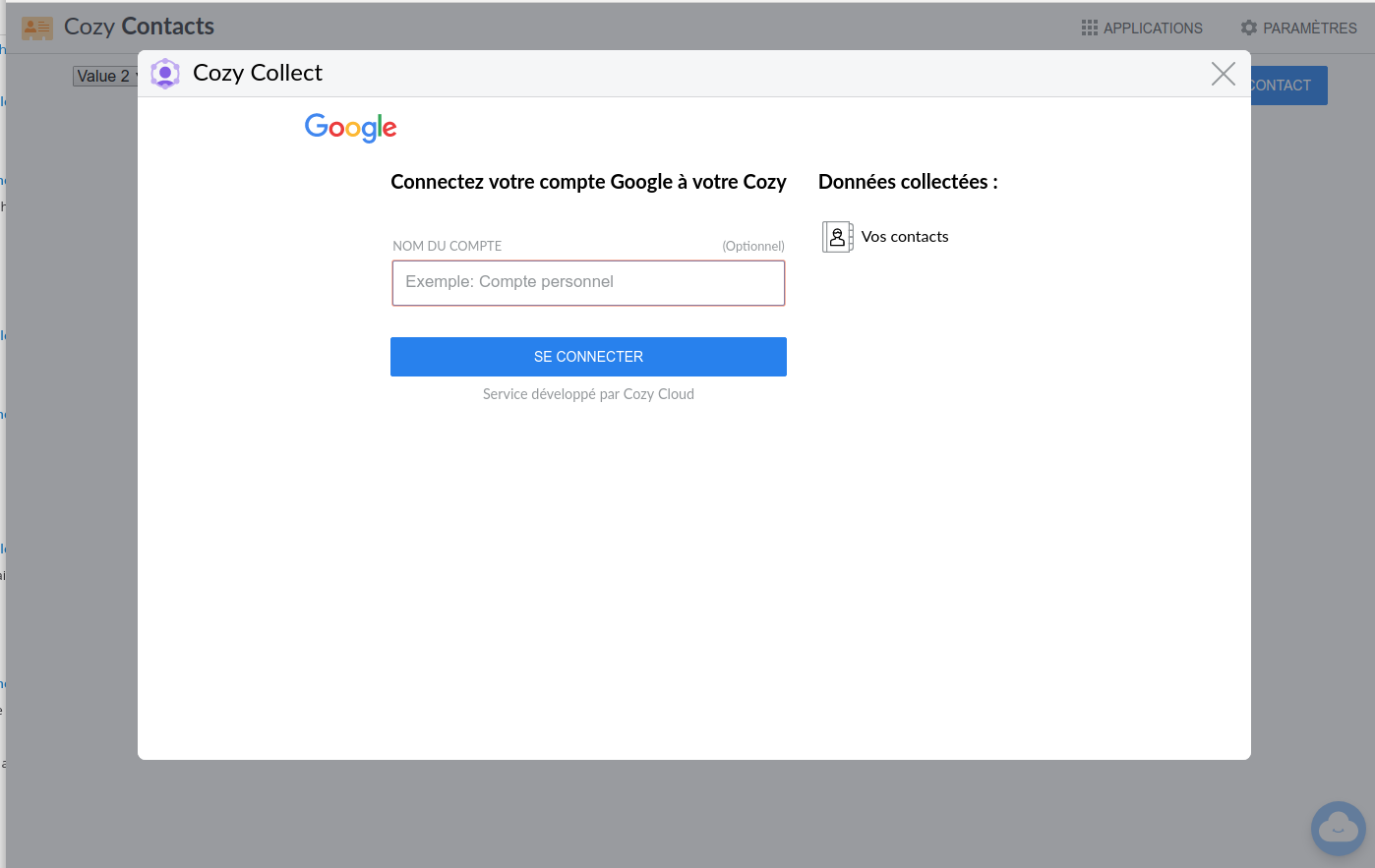 Synchroniser les contacts d'un compte Google vers un Cozy