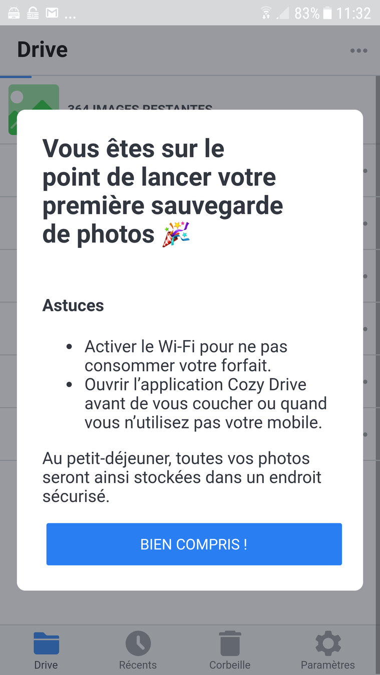 Afficher un message lorsque le wifi n'est pas activé et que des photos sont à sauvegarder