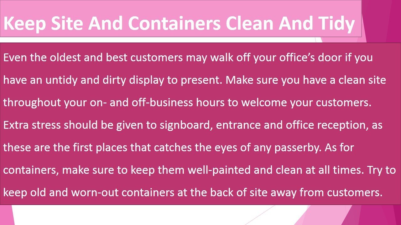 These Tips and Instructions will keep your Storage Containers and Site in Perfect Condition