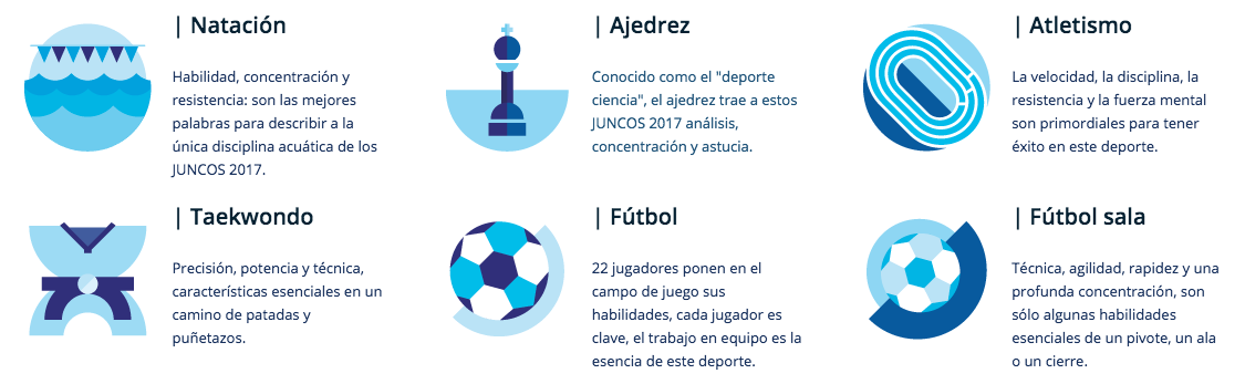 Se visualizarán todas las disciplinas que formarán parte de JUNCOS. Cada disciplina tendrá un icono asociado y un título