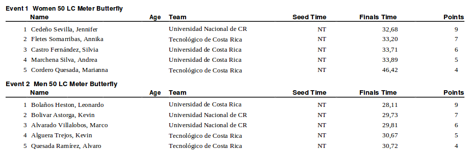 - Detalles generales de la competencia, como lugar, fecha, hora de inicio y finalización.
