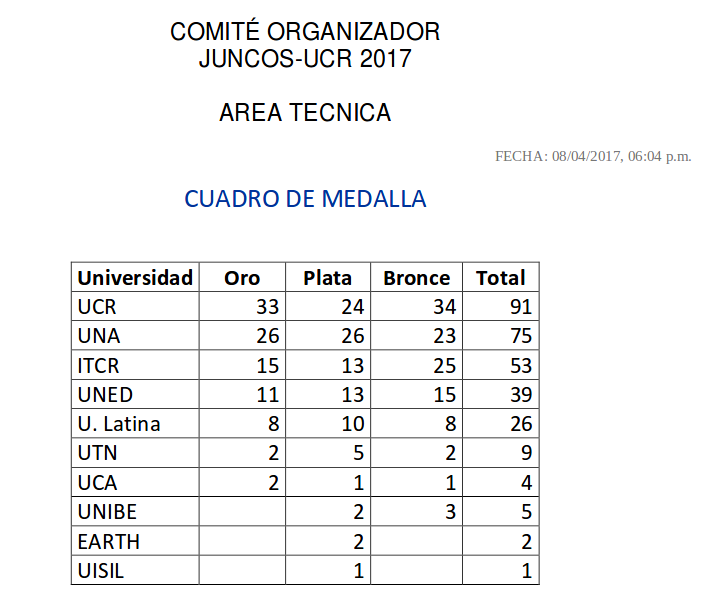 Informar sobre los resultados de las competencias realizadas durante la ejecución de JUNCOS 2018