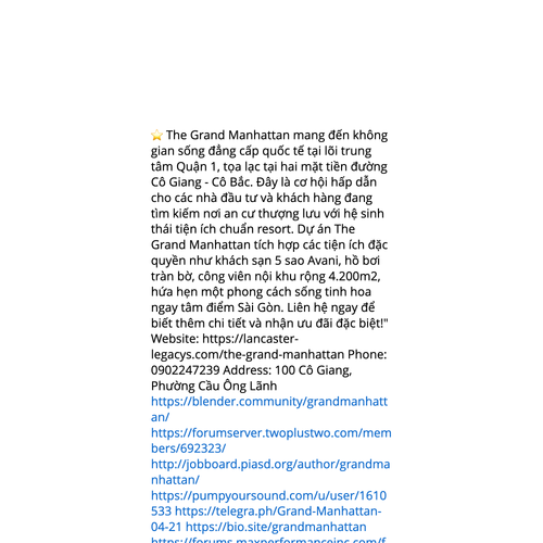 Website: https://lancaster-legacys.com/the-grand-manhattan ⭐️ The Grand Manhattan mang đến không gian sống đẳng cấp quốc tế tại lõi trung tâm Quận 1, tọa lạc tại hai mặt tiền đường Cô Giang - Cô Bắc. Đây là cơ hội hấp dẫn cho các nhà đầu tư và khách