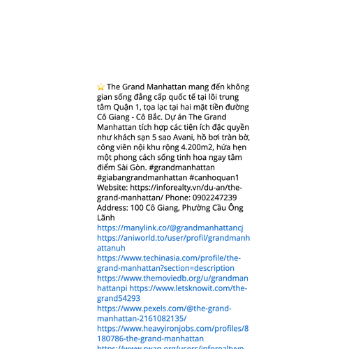 Website: https://inforealty.vn/du-an/the-grand-manhattan/ ⭐️ The Grand Manhattan mang đến không gian sống đẳng cấp quốc tế tại lõi trung tâm Quận 1, tọa lạc tại hai mặt tiền đường Cô Giang - Cô Bắc. Dự án The Grand Manhattan tích hợp các tiện ích đặc
