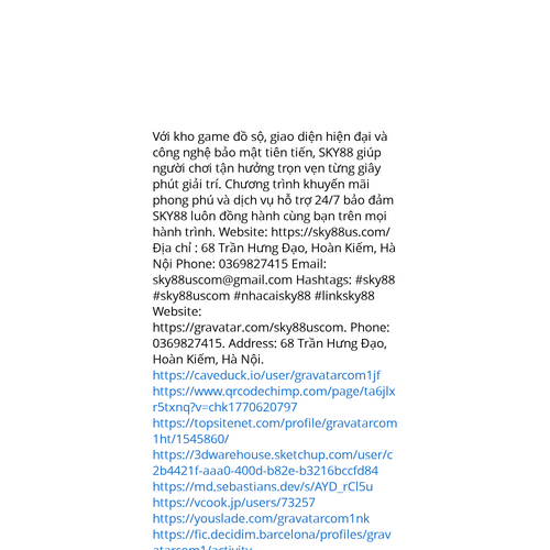 Website: https://gravatar.com/sky88uscomhttps://gravatar.com/sky88uscom Với kho game đồ sộ, giao diện hiện đại và công nghệ bảo mật tiên tiến, SKY88 giúp người chơi tận hưởng trọn vẹn từng giây phút giải trí. Chương trình khuyến mãi phong phú và dịch vụ hỗ trợ 24/7 bảo đảm SKY88