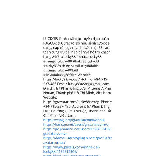 Website: https://gravatar.com/lucky88aeorghttps://gravatar.com/lucky88aeorg LUCKY88 là nha cái trực tuyến đạt chuẩn PAGCOR & Curacao, sở hữu sảnh cược đa dạng, nạp rút cực nhanh, bảo mật SSL an toàn cùng ưu đãi hấp dẫn và hỗ trợ khách hàng 24/7. #lucky88 #nhacailucky88 #trangch