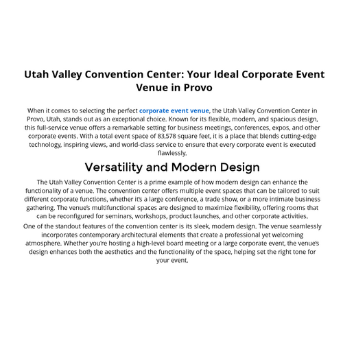 Utah Valley Convention Center: Your Ideal Corporate Event Venue in Provo