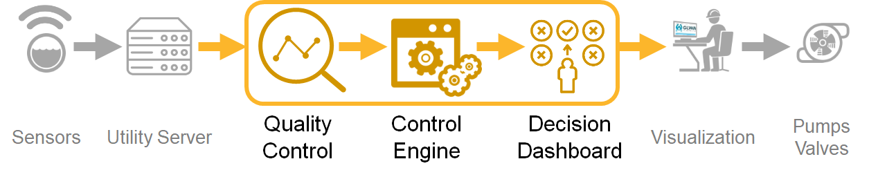 Decision Dashboard shows real-time and historical recommendations alongside system data like flow and levels.