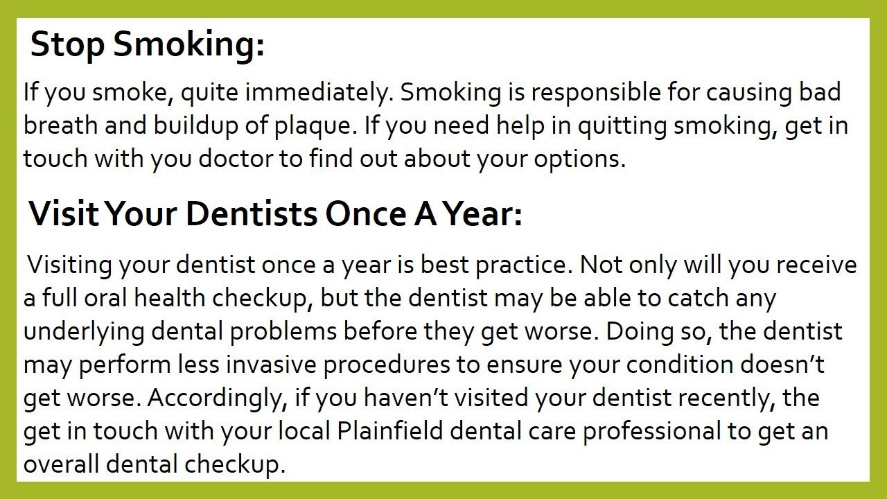 If you haven’t visited your dentist recently, the get in touch with your local Plainfield dental care professional to get an overall dental checkup.