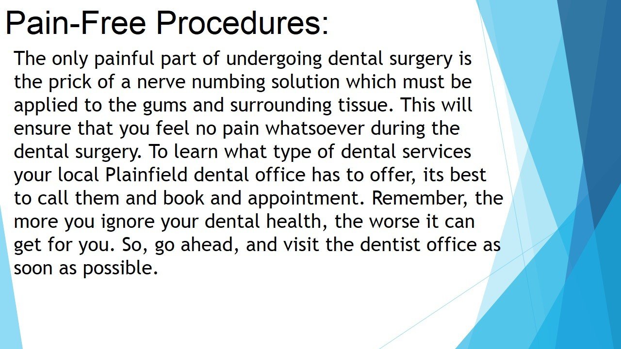 To learn what type of dental services your local Plainfield dental office has to offer, its best to call them and book an appointment.