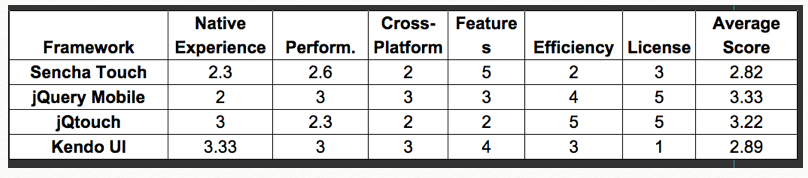 Sencha Touch scores highly against it’s competitors by providing a native look and feel across all of the platforms it supports.