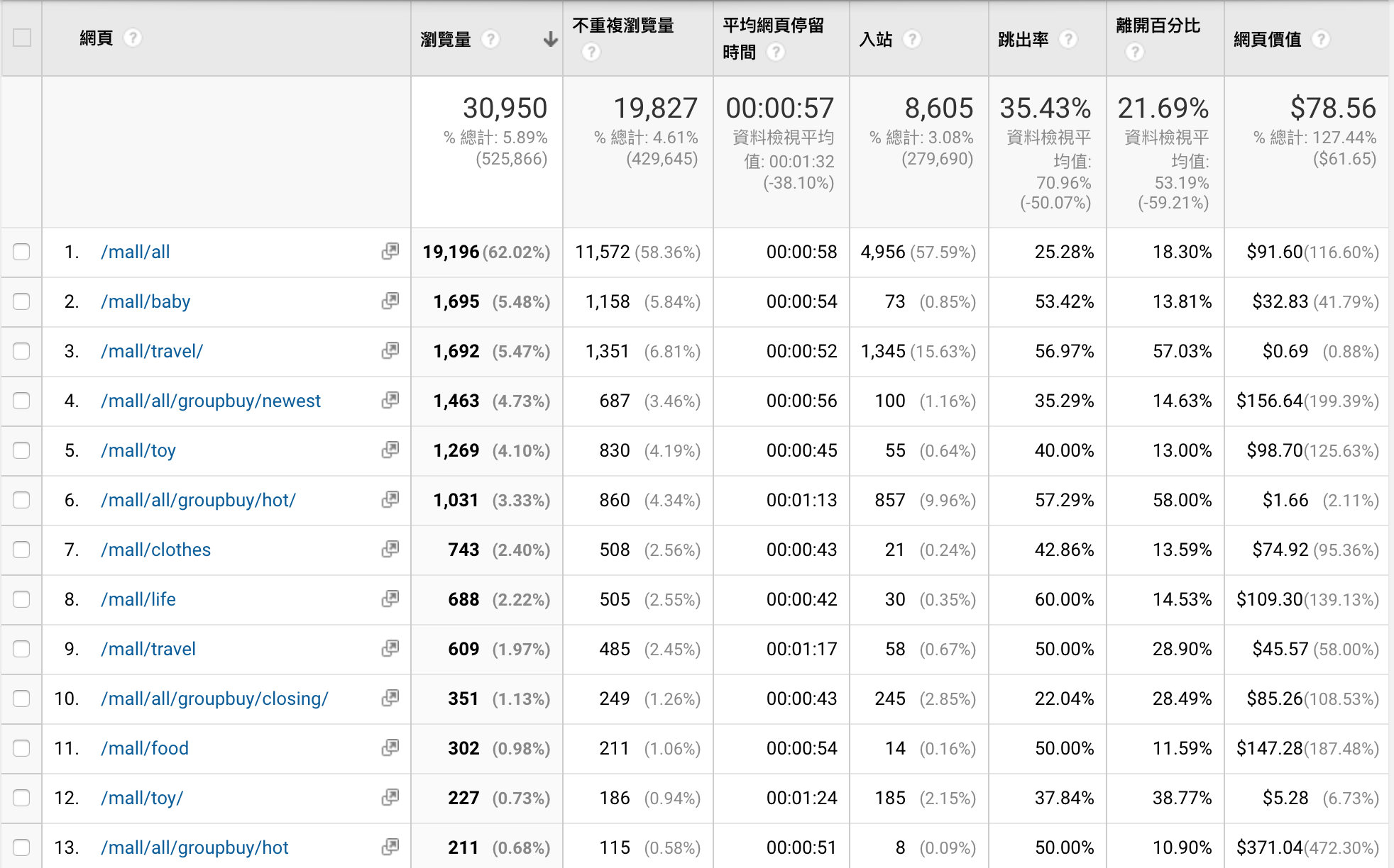 改版前近三個月:團購首頁 + 商城首頁